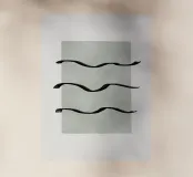 Opera d'arte astratta e moderna di forma rettangolare con pennellate e texture nere. Arte minimalista in verde salvia per uno stile di vita bohémien, bohémien, industriale, japandi e moderno.