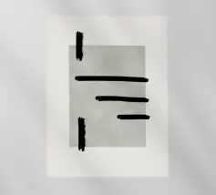 Opera d'arte astratta e moderna di forma rettangolare con pennellate e texture nere. Arte minimalista in verde salvia per uno stile di vita bohémien, bohémien, industriale, japandi e moderno.