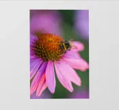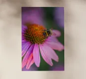 Un'immagine ravvicinata di un bombo su un fiore di conifera rosa, che mostra l'intricata danza della natura e della vita in un dettaglio vibrante.