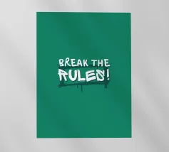Scrittura Break Rules in eleganti tonalità di blu con un effetto ricco e strutturato.