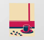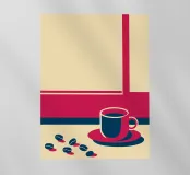 Godetevi l'aroma fragrante e il gusto ricco del caffè. Design con chicchi di caffè e una tazza di caffè da leccarsi i baffi.