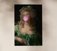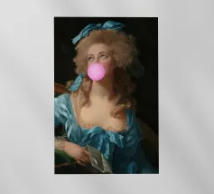 Fate una dichiarazione giocosamente esclusiva con "You Can't Sit With Me". Questa accattivante stampa pop art fonde magistralmente la ritrattistica classica, con una figura regale dall'elaborata acconciatura, con un tocco contemporaneo e umoristico. Una vivace bolla di gomma da masticare rosa è aggiunta giocosamente alle sue labbra, mentre il testo in grassetto rosa caldo "YOU CAN'T SIT WITH ME" sovrasta l'immagine, ispirandosi alla cultura iconica dei meme. È una miscela perfetta di eleganza senza tempo e arguzia moderna, ideale per aggiungere personalità e un tocco di spensierata esclusività a qualsiasi interno moderno. Realizzato con un eccezionale formato 7000x5000 p
