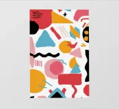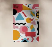 Una composizione astratta caotica e divertente in stile Memphis, con un assortimento casuale di forme geometriche, ghirigori e motivi. L'opera d'arte è energica, giocosa e ha una fresca atmosfera retrò.
