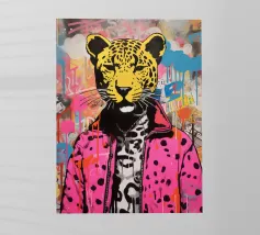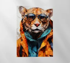 Illustrazione stilizzata di un carismatico ghepardo vestito in modo casual chic con occhiali da sole eleganti e una posa da dandy sicuro di sé. Con la sua tavolozza vibrante e il suo tocco favoloso, quest'opera d'arte celebra l'individualità, lo stile e la fiducia in se stessi. Perfetto se amate le vibrazioni della fauna tropicale con uno spirito moderno.