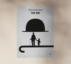 Stampa Chaplin, Poster cinematografico alternativo, Stile vintage, Bastone, Bombetta, Baffi, Piccolo vagabondo, Film dell'epoca d'oro, Film biografico, Regalo