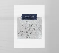 Chiave dal design cromato iridescente in un sacchetto di plastica testurizzato