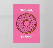 Ciambella con glassa rosa e zuccherini " Rotonda e orgogliosa " pellicola backlit