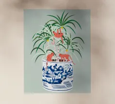 Uccello, Pittura, Disegno, Becco, Illustrazione, Arti creative, Piuma, colomba, piccione, pastello, verde acqua, rosa, pianta d'appartamento, piante, botanica, vaso di fiori, natura, animali, uccelli