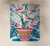 Uccello, Pittura, Disegno, Becco, Illustrazione, Arti creative, Piuma, colomba, piccione, pastello, verde acqua, rosa, pianta d'appartamento, piante, botanica, vaso di fiori, natura, animali, uccelli