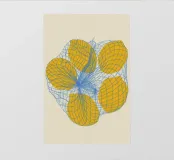 Cinque limoni in una borsa a rete pellicola backlit