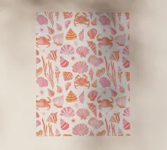 Un allegro motivo costiero con vivaci aragoste e conchiglie disposte in una semplice ripetizione all-over. Fresco, balneare e un po' preppy. Perfetto per portare le vibrazioni estive e il fascino del mare nella vita di tutti i giorni.