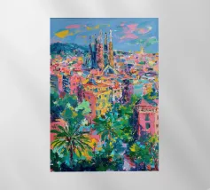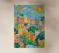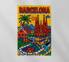 Celebrate il mondo fantastico di Antoni Gaudí con questo vibrante poster digitale del Parco Güell di Barcellona. L'opera d'arte presenta l'iconica panchina a mosaico e gli stravaganti padiglioni d'ingresso, sullo sfondo della città e del Mar Mediterraneo. I colori vivaci, le forme architettoniche uniche e il verde lussureggiante catturano l'essenza del modernismo catalano. Questo file digitale di qualità superiore (7000x5000 pixel, 300 dpi) garantisce dettagli eccezionali, perfetti per gli amanti dell'arte e dei viaggi in Spagna.
