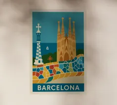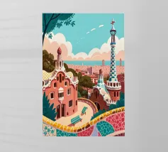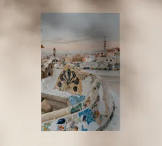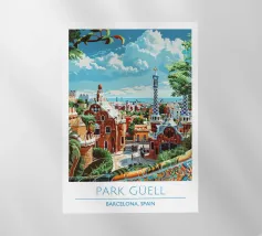 Park Guell Barcellona Poster | Gaudi Mosaico Vintage Travel Ar pellicola backlit