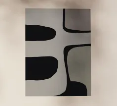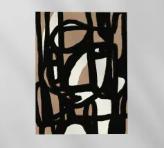 Una potente rete di linee nere che si piegano e si intersecano, come flussi di pensiero contrastanti su uno sfondo neutro. La composizione ricorda l'astrazione gestuale, con echi di Franz Kline e dell'arte dell'inchiostro giapponese. Nonostante l'austerità della tavolozza dei colori, si sviluppa una dinamica espressiva. Un'opera che trae tensione dalla riduzione e carica lo spazio di pura energia visiva. Anche su tessuti.