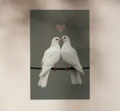Celebrate la bellezza dell'amore e del legame con "Love Doves", un'opera d'arte minimalista, morbida ed elegante, con due colombe bianche che si toccano il becco sotto il simbolo di un delicato cuore. Su uno sfondo pulito e tenue, questo disegno irradia pace, purezza e tenerezza, rendendolo un pezzo perfetto per gli spazi interni romantici, moderni o tranquilli.