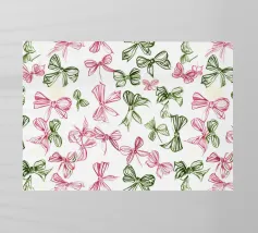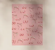 Un motivo giocoso di fiocchi colorati in rosso, rosa, verde acqua, verde lime e pesca, sparsi su un morbido sfondo color pesca con accenti di stelle bianche. Questo disegno allegro e festoso dona un fascino stravagante, perfetto per aggiungere un tocco femminile e gioioso al vostro spazio. Ideale per confezioni regalo, decorazioni ispirate alla moda o per chiunque ami un motivo audace ma delicato. Creato da showmemars