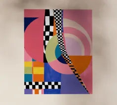 Quest'opera ispira con colori vivaci e forme chiare che creano una composizione armoniosa e astratta. Perfetto per aggiungere un accento creativo a qualsiasi ambiente o prodotto.