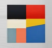 Questa opera d'arte presenta un insieme di audaci forme geometriche disposte a griglia.