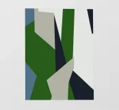 Un'immagine astratta con forme geometriche interconnesse in colori tenui come il verde, il grigio e il blu. La composizione crea un senso di movimento e complessità.