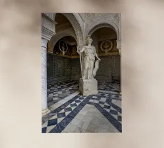Quest'opera d'arte presenta una composizione di piante secche ed elementi floreali disposti ad arte che combinano naturalezza ed estetica. Tre fiori bianchi sono al centro della scena, la loro forma elegante e la loro consistenza fine ricordano la porcellana. Appaiono come protagonisti silenziosi in un ricco insieme di materiali essiccati, tra cui foglie delicate, teste di semi e capsule di frutta nelle calde tonalità del marrone, del verde e del blu.