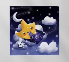 Crescent Moon Cuddling Star Art Print pellicola backlit
