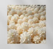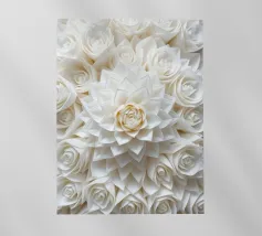 Questa splendida immagine cattura un sereno e intricato campo di fiori ritagliati in carta, che assomiglia a un mare di dalie bianche luminescenti. Ogni fiore è stato meticolosamente realizzato con più strati, creando un senso di profondità e delicata consistenza. Le morbide tonalità crema e bianco sporco, immerse in una luce delicata, evocano una sensazione di purezza, tranquillità e raffinata eleganza. Questo pezzo è perfetto per chi apprezza l'artigianato dettagliato e un'estetica pulita e minimalista. Sarebbe una splendida aggiunta a un arredamento moderno, scandinavo o shabby chic, aggiungendo un tocco di sofisticata arte floreale a qualsiasi spa.