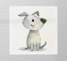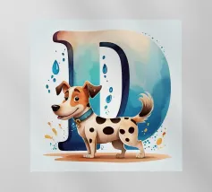 Un simpatico cucciolo di dalmata gioca felice in un prato fiorito, circondato da una farfalla e da fiori in un'incantevole illustrazione ad acquerello.