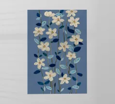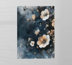 Questo dipinto presenta un'accattivante arte floreale astratta che combina un'estetica moderna con un'eleganza senza tempo. Una cascata di forme floreali astratte - rese in sottili tonalità di bianco e beige - è disposta lungo una disposizione verticale che crea un senso di movimento fluido e quasi dinamico. Lo sfondo blu scuro esalta il contrasto, permettendo alle forme delicate di risaltare e attirare lo sguardo dell'osservatore. Questo pezzo è ideale per gli interni contemporanei e funge da accattivante punto focale negli spazi abitativi moderni.