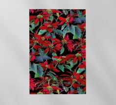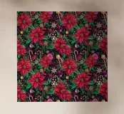 Un motivo natalizio ricco e festoso, caratterizzato da vivaci stelle di Natale rosse, bastoncini di zucchero, ornamenti, rami sempreverdi e accenti dorati su uno sfondo scuro. Questo sofisticato disegno natalizio combina i tradizionali elementi botanici del Natale con un'estetica moderna e lunatica per un elegante look stagionale.