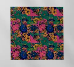Un motivo floreale ricco e vibrante, caratterizzato da fiori magenta, rosa e corallo con fogliame verde acqua, turchese e verde lime su uno sfondo blu scuro. Questo disegno botanico lunatico combina un'eleganza cupa con fiori luminosi dai toni gioiello per un contrasto sorprendente. Perfetto per gli amanti dei fiori scuri, per i fan dell'estetica dark, per gli appassionati dei toni gioiello e per tutti coloro che apprezzano la bellezza drammatica dei fiori vibranti su sfondi scuri con un tocco moderno e sofisticato.