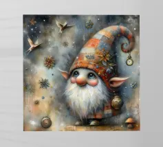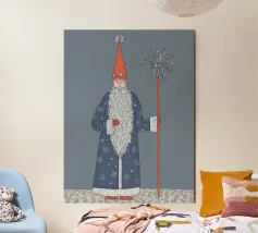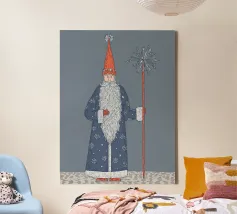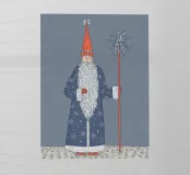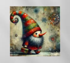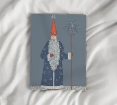 Ded Moroz stilizzato, la leggendaria figura invernale del folklore russo. Con il suo alto cappello a punta, il lungo mantello decorato con fiocchi di neve e il bastone di ghiaccio ornato, sembra un guardiano dell'inverno. Le linee chiare, i colori tenui e gli ornamenti minimalisti conferiscono alla figura un'espressione al tempo stesso tradizionale e moderna. Un suggestivo omaggio alle usanze invernali russe e alla narrazione di fiabe.