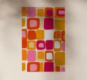 Questo disegno astratto è un omaggio esplosivo allo stile moderno della metà del secolo scorso e all'energia sfrenata della pop art. Rettangoli e quadrati arrotondati danzano in una tavolozza di colori caldi come l'arancio brillante, il fucsia, il rosso intenso e il pesca tenue. La composizione irradia un ottimismo quasi psichedelico, ma perfettamente equilibrato, grazie alla sua giocosità geometrica e alla stratificazione delle forme. Un capolavoro che diffonde immediatamente gioia, ravviva l'ambiente e celebra l'estetica degli anni '60 e '70 con una freschezza senza tempo.