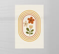 Un delicato motivo floreale abbinato a linee geometriche curve in colori tenui della terra. Questo disegno emana un'eleganza naturale e un fascino boho ed è perfetto per chiunque voglia aggiungere stile alla propria casa. Ideale per prodotti come murales, cuscini, tazze o custodie per cellulari: un accento senza tempo per qualsiasi ambiente. Questa combinazione unica di natura e geometria aggiunge un tocco artistico alla vostra vita quotidiana.