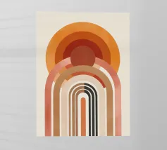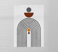 Questo design colpisce per l'armonia degli archi e per la palette di colori caldi e terrosi in marrone, nero e arancione. Le linee geometriche pulite e il sottile tocco vintage lo rendono un'attrazione senza tempo per qualsiasi casa moderna o nostalgica. Perfetto per l'arte da parete, i cuscini o gli accessori per la casa, per dare alla vostra stanza uno stile elegante e unico.