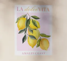 Questo colorato design retrò combina limoni e forme vivaci in blu e giallo per creare un'opera d'arte fresca e moderna. Ispirato alla leggerezza estiva e al fascino mediterraneo, porta freschezza e buonumore in ogni casa. Perfetto come murale, tazza o accessorio per la casa - ideale per gli amanti della grafica moderna, dei motivi di frutta e delle decorazioni estive.