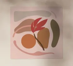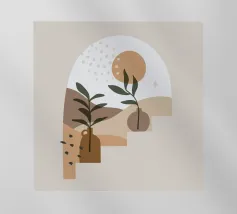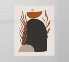 Quest'opera d'arte presenta una miscela di forme astratte in toni caldi, incorporando forme e texture naturali. Evoca un senso di calma e creatività, perfetto per gli spazi contemporanei.