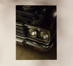 Dettaglio frontale di un'auto d'epoca pellicola backlit