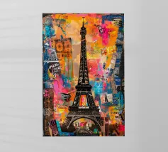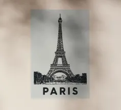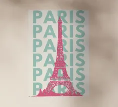 La Torre Eiffel è un noto punto di riferimento di Parigi e simboleggia l'intera Francia in tutto il mondo. La realizzazione grafica mostra la torre composta solo da parole. Motivo moderno e decorativo con figure geometriche che enfatizzano l'effetto della Torre Eiffel e la mettono in primo piano.
