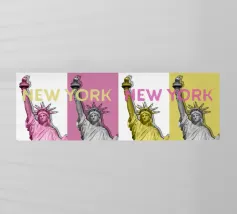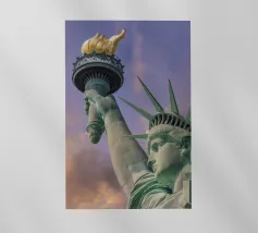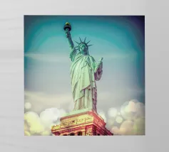 La Statua della Libertà, su uno sfondo colorato, ispira libertà e speranza. Una reliquia del futuro.