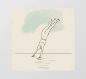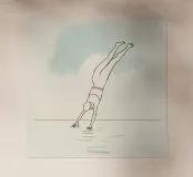 Disegno lineare che mostra un subacqueo che entra in acqua in modo pulito pellicola backlit