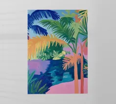 Scoprite la rilassante piscina mediterranea e le illustrazioni tropicali che portano in casa vostra il fascino delle vacanze estive con palme e fiori esotici!