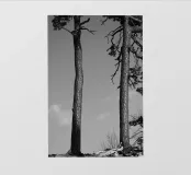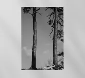 Due alberi in inverno su una collina in bianco e nero pellicola backlit