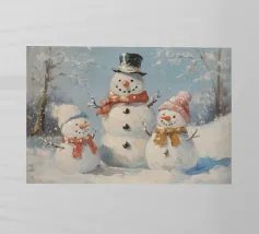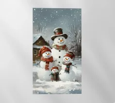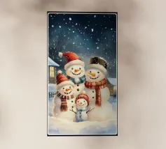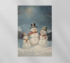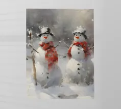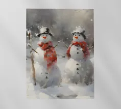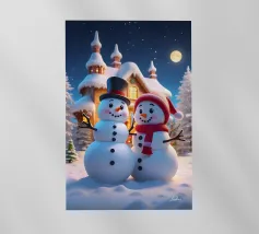 I due pupazzi di neve sono mano nella mano e mostrano le loro espressioni amichevoli. Ognuno di loro è adornato con un cappello e una sciarpa, circondato da fiocchi di neve che cadono sotto il cielo notturno invernale.