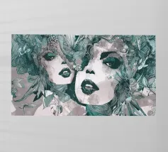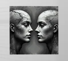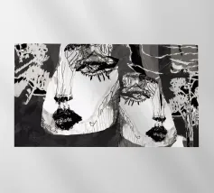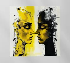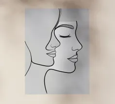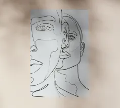 Due eleganti volti di profilo che mostrano un'intricata line art. pellicola backlit