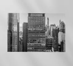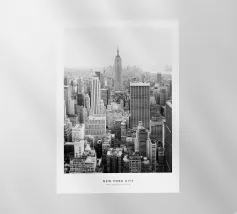 La splendida fotografia in bianco e nero cattura lo skyline di Manhattan, mostrando gli imponenti grattacieli e le loro eleganti facciate in una composizione geometrica da una prospettiva aerea. Con riflessi visibili alla luce del giorno, questo poster di lusso incarna l'arte moderna ed è un'aggiunta elegante agli interni contemporanei.