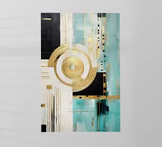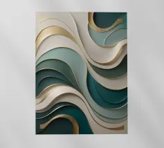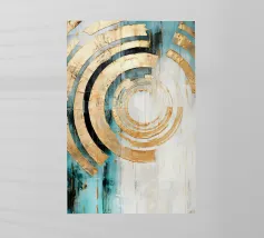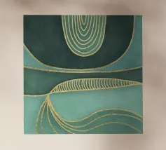 A captivating abstract painting featuring a swirling vortex of emerald green hues, accented by metallic gold accents and textured patterns. The artwork evokes a sense of depth and movement, drawing the viewer into its mesmerizing depths.
