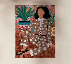 Un ritratto astratto moderno e minimalista creato con linee fluide e continue, che raffigura un volto dall'espressione dolce in una tavolozza di colori terrosi.