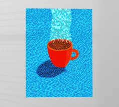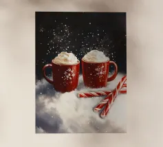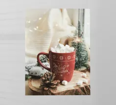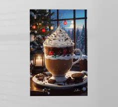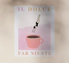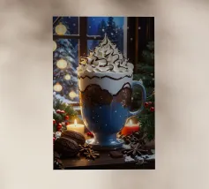 Un'illustrazione spiritosa, deliziosa e golosa di una tazza piena di cioccolata calda e panna montata. Il testo dice: "Non voglio innamorarmi, voglio innamorarmi della cioccolata".