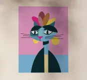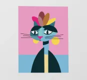 Con orgoglio, colore e carattere, F. Catlo porta la sua corona di fiori come un coronamento della creatività. Un omaggio a F. Kahlo, tradotto in un'icona di gatto bidimensionale e geometrica, piena di forza e dolcezza allo stesso tempo.