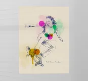 Un'illustrazione dinamica e colorata in stile schizzo di una ragazza impavida in movimento su uno skateboard. Audaci linee di inchiostro incontrano vivaci schizzi di acquerello in rosa, verde, arancione e giallo, catturando l'energia, la libertà e lo spirito della gioventù. Lo sfondo minimalista contrasta splendidamente con il movimento espressivo della figura. Perfetto per interni moderni, camere di ragazzi, amanti dello skate o studi creativi alla ricerca di un tocco di colore e attitudine urbana.